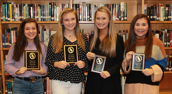 Victoria Huitt - Varsity Spirit Award; Cayden Ritchie - Varsity Sportsmanship Award; Sadie Worley - JV Spirit Award; Eva Wilson - JV Coach's Award